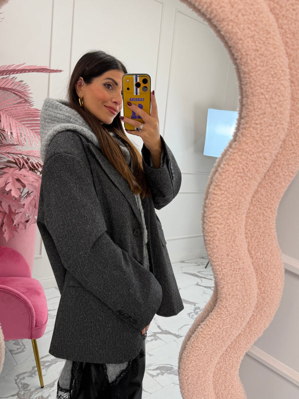 Balaclava in misto lana, a costine larghe, con coulisse.