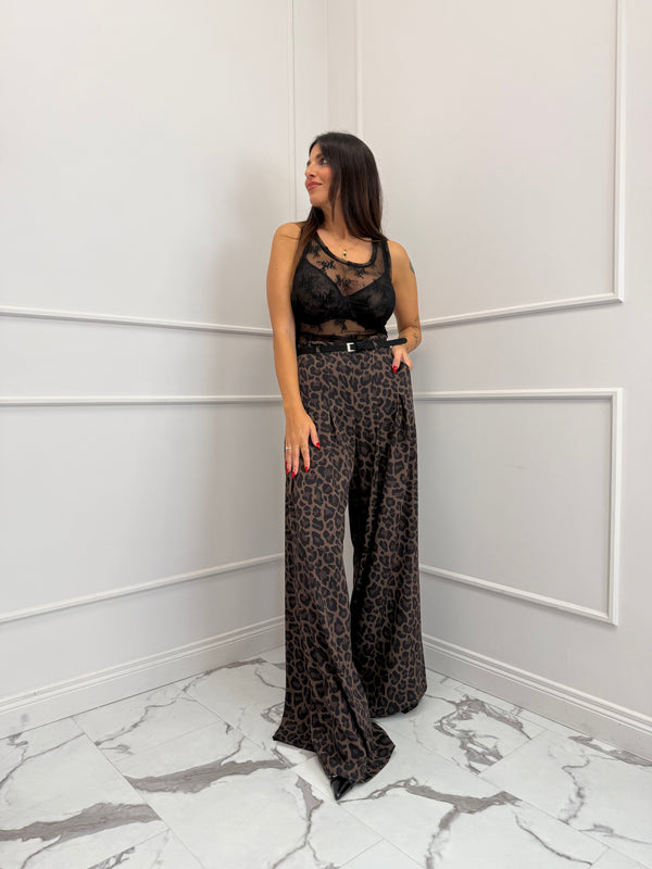 Canotta girocollo in pizzo in tessuto elasticizzato.