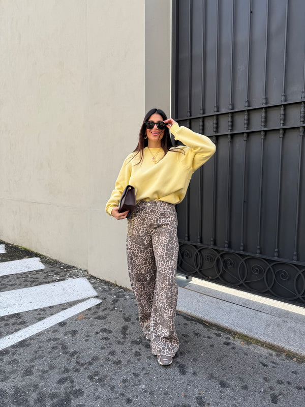 Felpa girocollo, interno felpato, manica ampia e polsini elasticizzati a costine, vestibilità comoda. La modella è alta 160cm e indossa una TAGLIA UNICA.