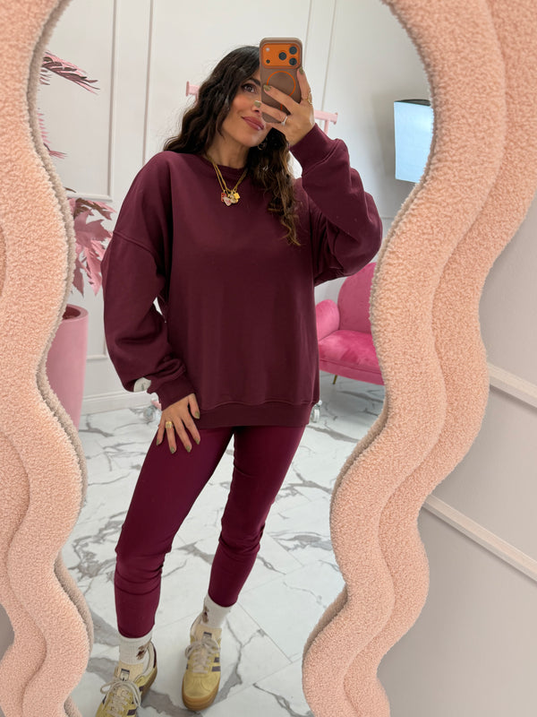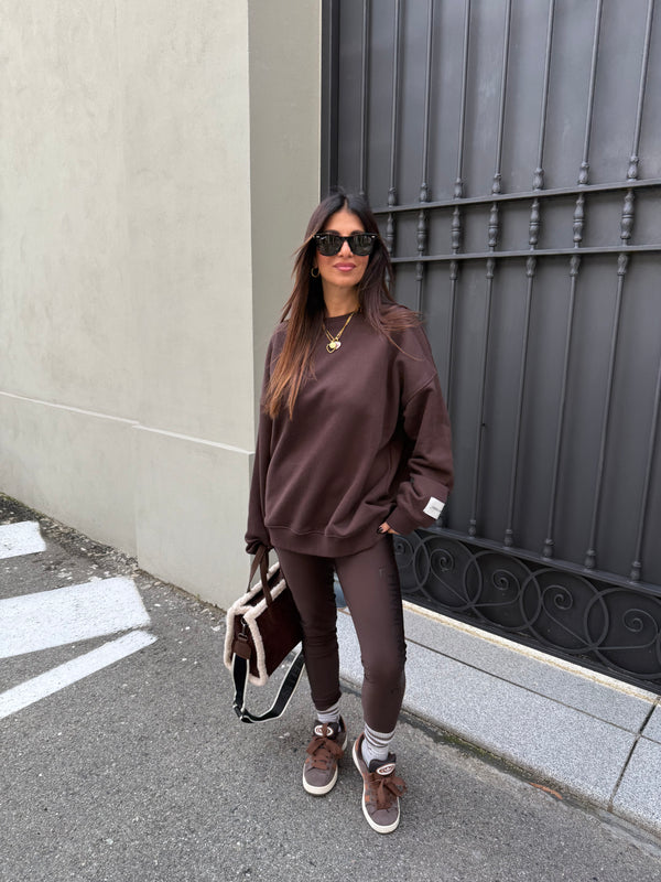Felpa girocollo, modello over, spalla scesa, manica morbida, logo nel polsino manica sinistra, interno felpato. Vestibilità over, la modella è alta 160 cm e indossa la taglia S.