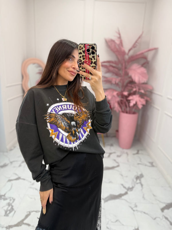 Felpa girocollo over effetto vintage con stampa sul davanti. Tessuto garzato. Taglia unica.