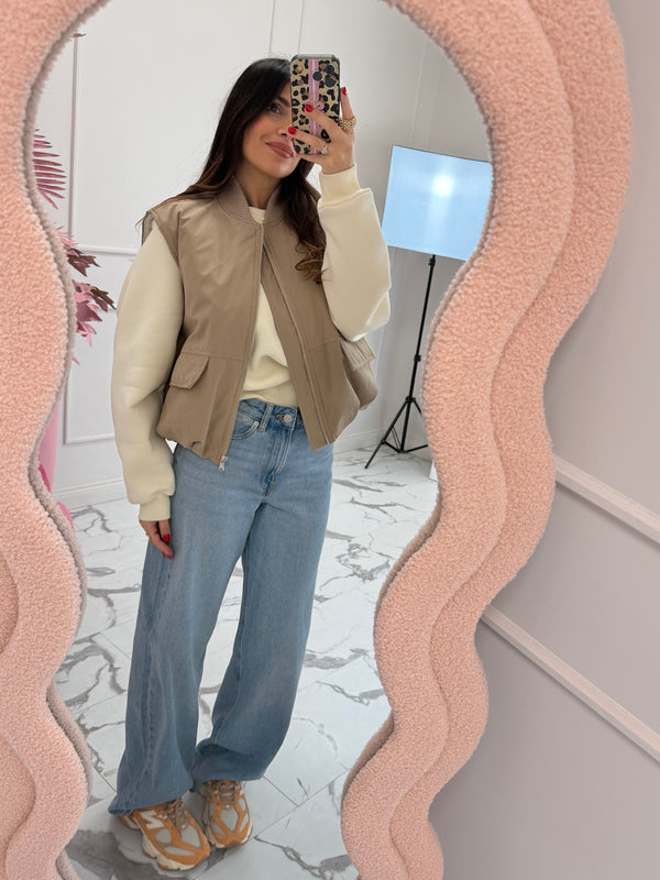 Jeans modello wide leg, vita media, gamba a palazzo, presenta tasche davanti e dietro, chiusura con bottone e zip. Vestibilità regolare. La modella è alta 160cm e indossa la taglia 26. Doppia lunghezza 30/32