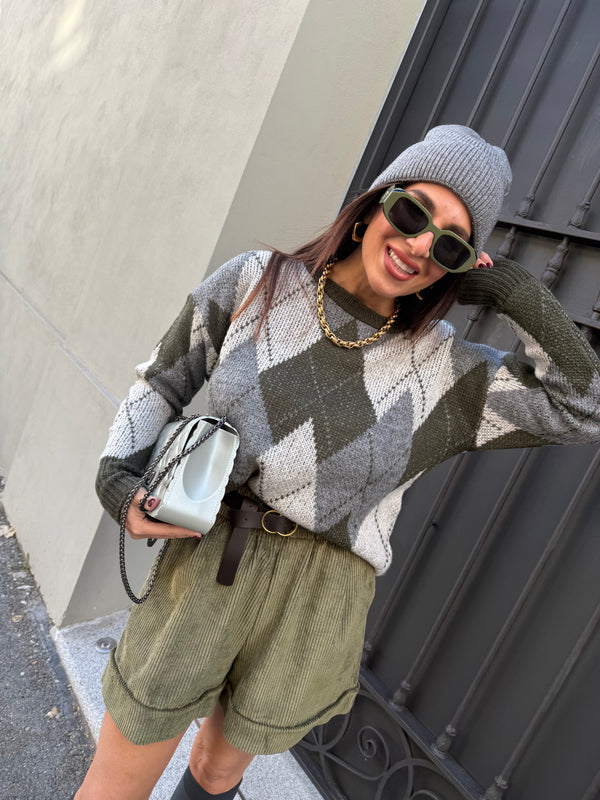 Maglione girocollo, in fantasia rombi, vestibilità regolare. La modella è alta 160cm e la TAGLIA è UNICA.