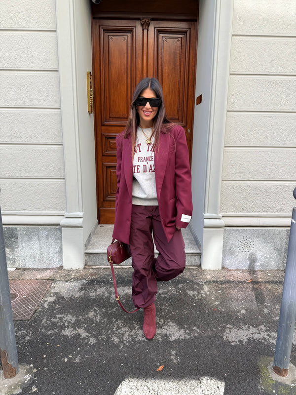 Pantalone balloon in parachute, presenta elastico in vita, tasche sul davanti ed elastico sul fondo. Vestibilità regolare.