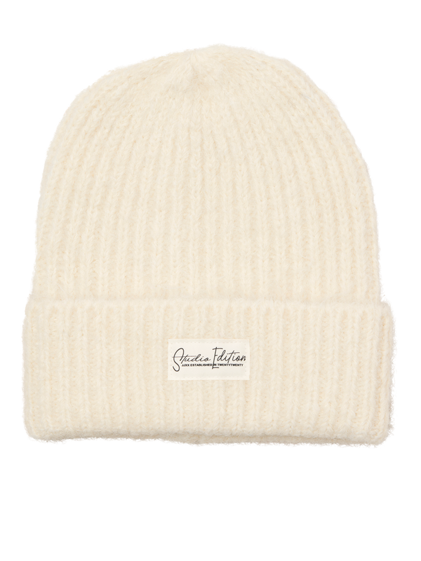 Set composto da cappello modello cuffia con risvolto a costine larghe, applicazione logo nella parte anteriore e sciarpa.
