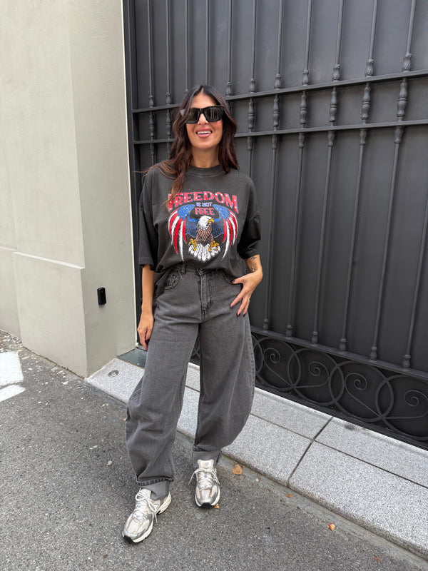 T-shirt girocollo, modello corto oversize, spalla scesa, stampa tigre nella parte anteriore, vestibilità over. La modella è alta 160cm e la taglia è unica.